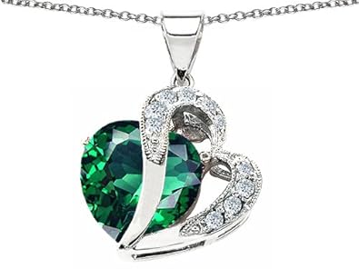 Jewelry Information Brand Name: Star K Metal stamp: 925-Sterling Metal: sterling-silver Gem Type: simulated-emerald, cubic-zirconia Minimum total gem weight: 10.3000 carats Setting: Prongs Width: 19 millimeters Length: 27 millimeters Chain: other-chain-type Clasp Type: other-clasp-type Resizable: No Stone Weight: 10 carats, 0.2500 carats Simulated-Emerald Information Stone shape: heart-shape Minimum color: Green Minimum Clarity: Clean Cut: very-good Polish: very-good Stone Creation Method: Simulated Stone Treatment Method: not-treated Cubic-Zirconia Information Stone shape: round-shape Minimum color: colorless Minimum Clarity: Clean Cut: very-good Polish: very-good Stone Creation Method: Simulated Stone Treatment Method: not-treated